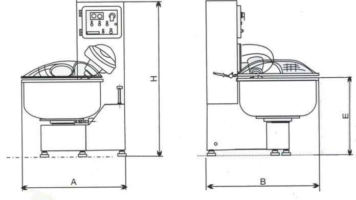設(shè)備能力 | 面團(tuán)允量范圍(kg) | 25-130 | 25-160 | 30-200 | 35-250 |