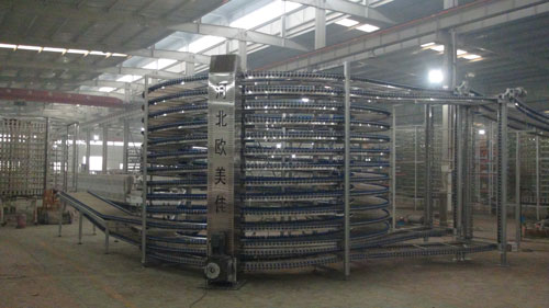 可根據(jù)速凍食品用途制造深度速凍螺旋塔,螺旋速凍塔適用于散裝和包裝食品。在-40度